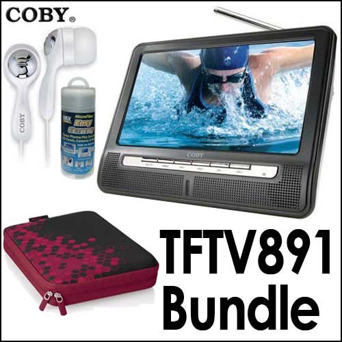"Coby TF-TV891 Portable 8 Inch Widescreen LCD TV With Digital Dual ATSC NTSC Tuner Bundle With Belkin F8N100-BRDL 8.9-inch Neoprene Notebook Sleeve Pitch, Coby CVE92 Super Bass Digital Stereo Earphones & Microfiber Cloth" Overview
